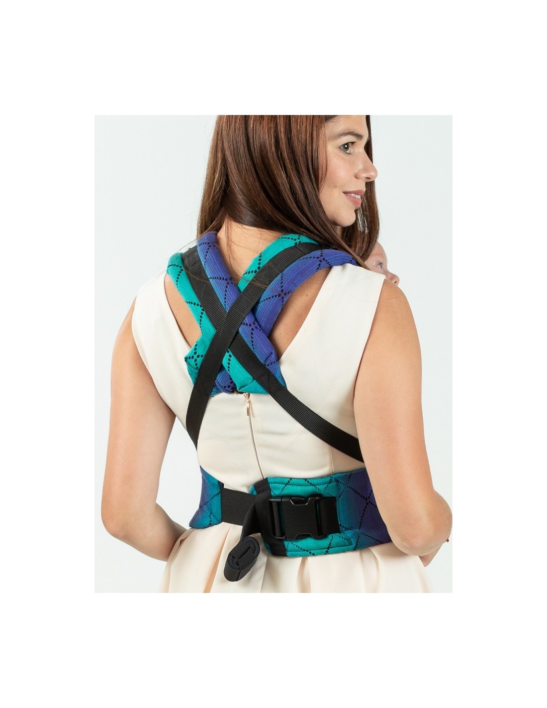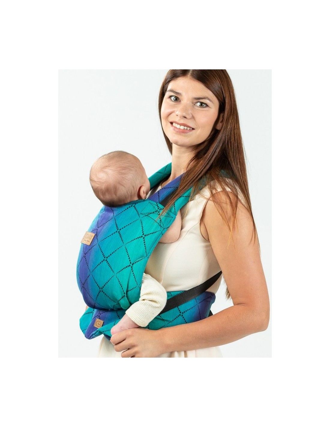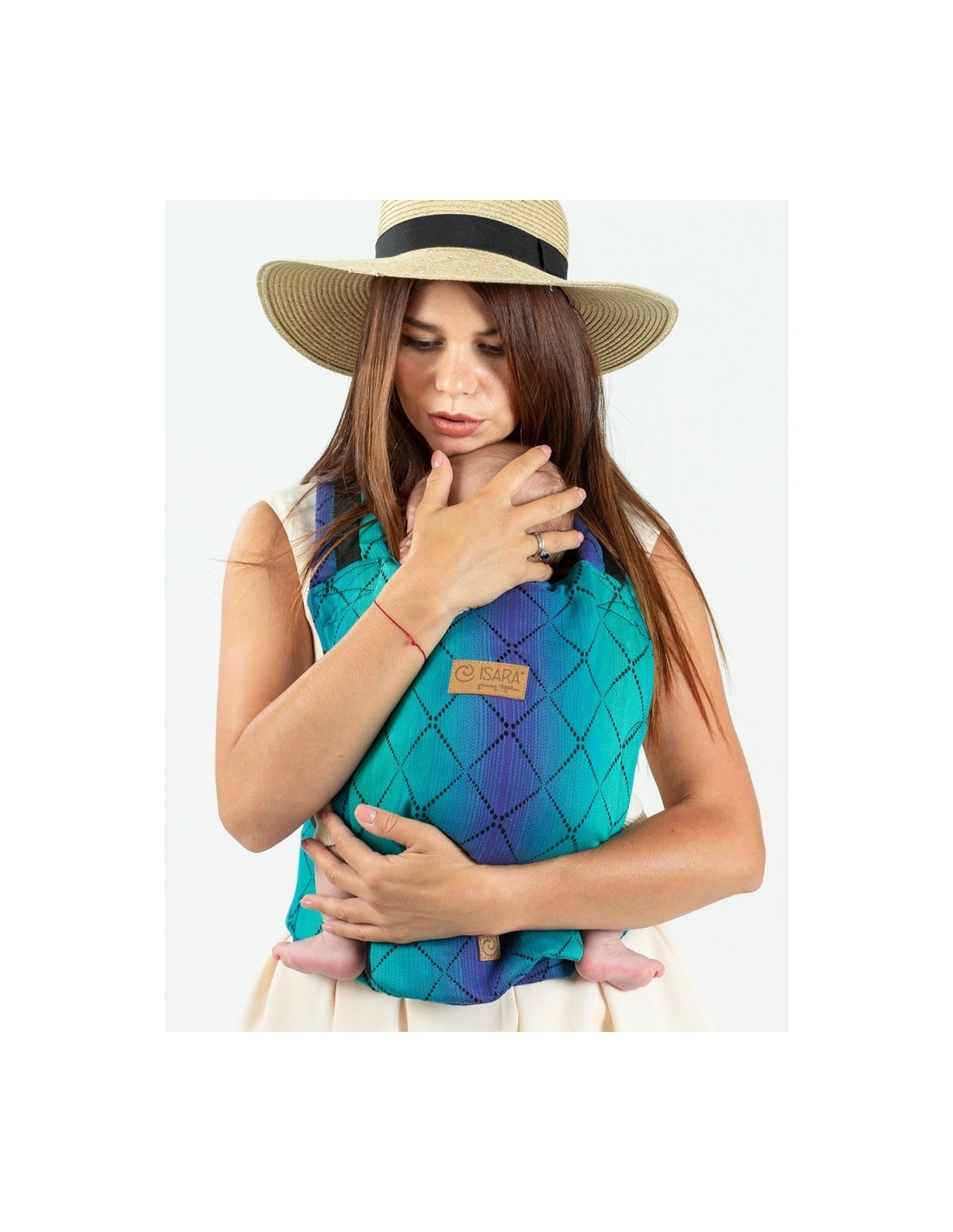 Mochila ergonómica de procedencia Rumana, de primera calidad - hecha de 100% algodón orgánico o de fular tejido de 100% de algodón orgánico. Isara Quick Full Buckle es una mochila hecha para mamás que buscan simplicidad, rapidez y no necesitan muchos ajustes.