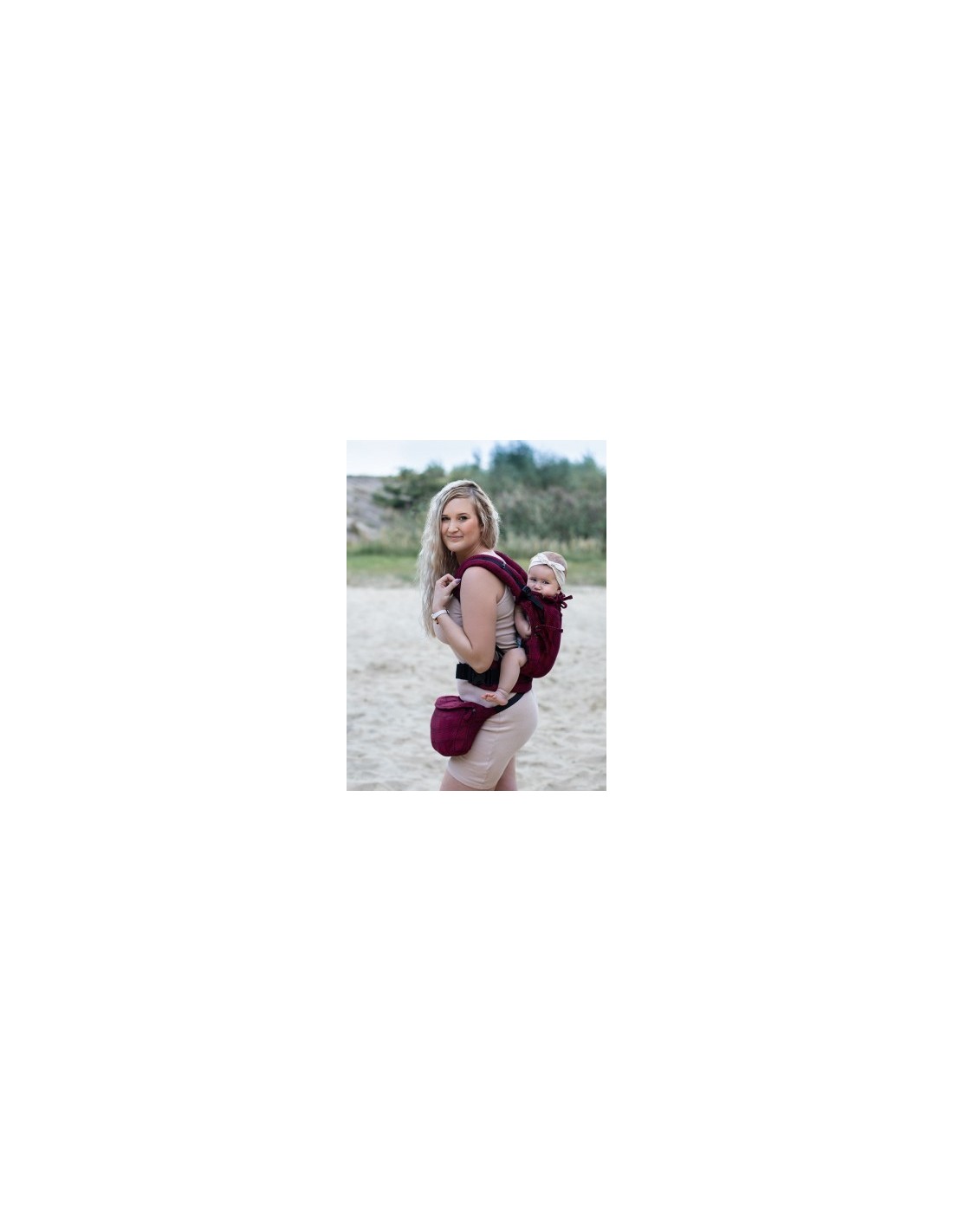- El cierre de hebilla inferior adicional garantiza la posición correcta del bebé (espalda en forma de C y pelvis recogida)